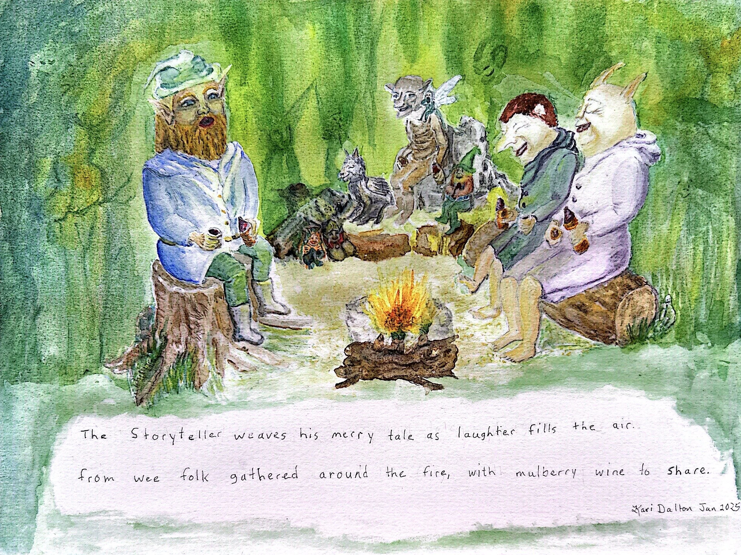 from wee folk gathered around the fire with mulberry wine to share `- Kari Dalton