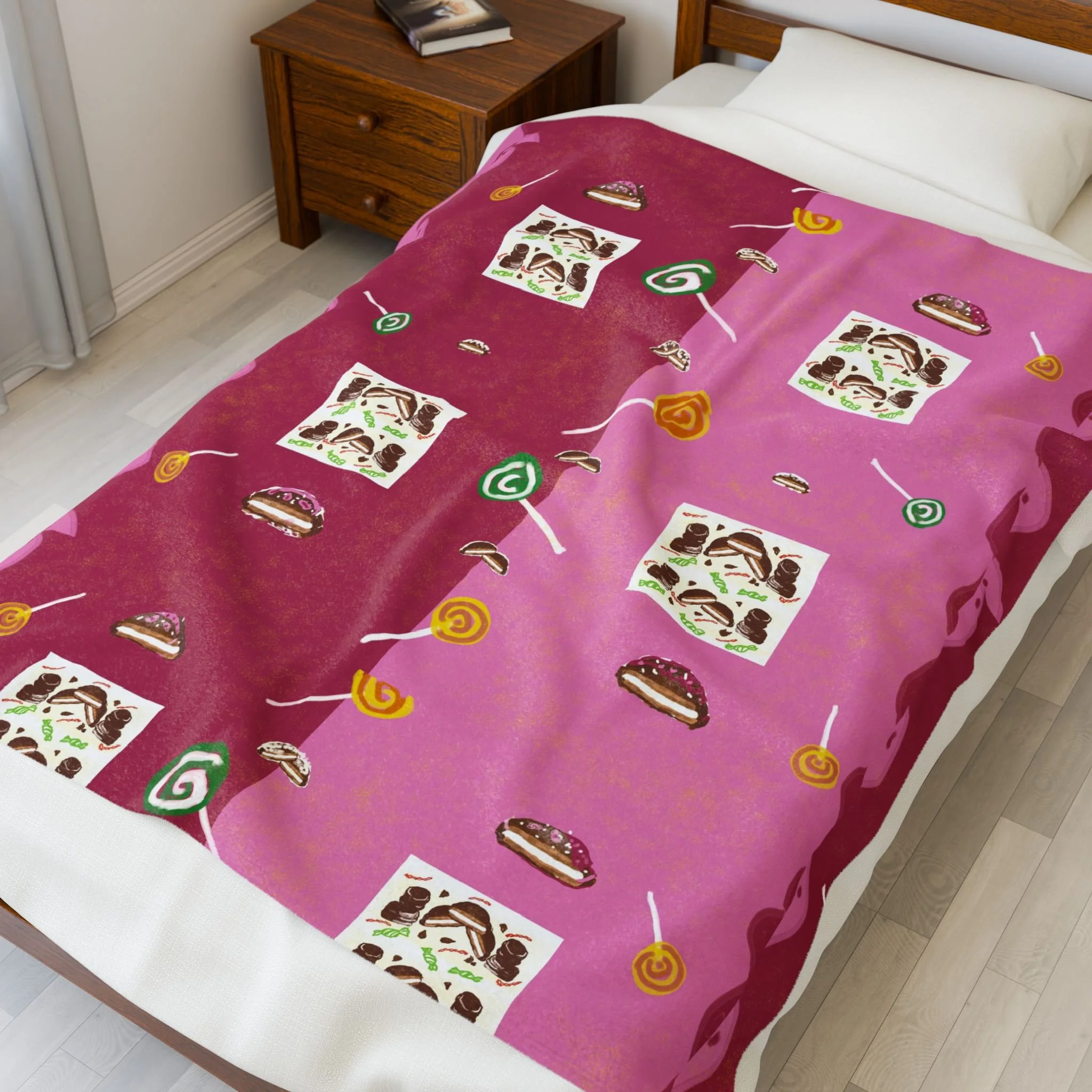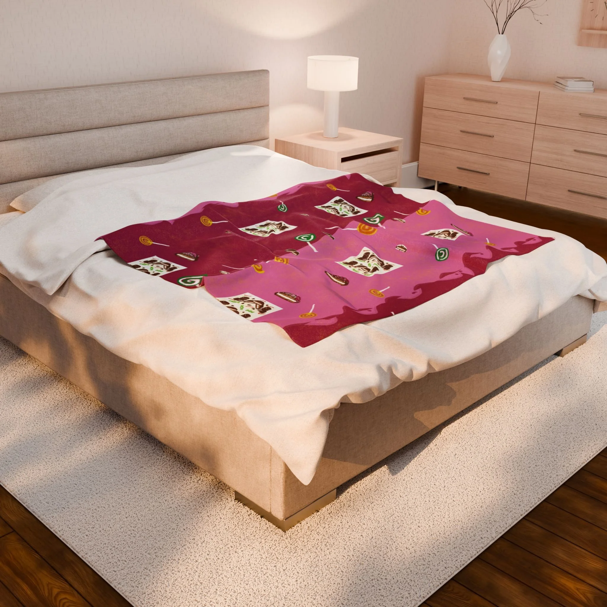 Plush Candy Dream Blanket — Velveteen Pink & Red Sweets Throw